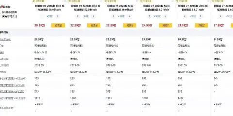 我们先来看看这款车的具体在售情况。懂车帝信息显示,目前2026款阿维塔07共有9款不同配置的车型在售,官方指导价区间为21.99万元到28.99万元之间,覆盖了从入门级到高端豪华的不同需求,消费者可根据自身预算和需求选择合适的配置。而且这款车还分为了增程版和纯电版两大动力类型,其中高配版本为四驱系统,能够为购买者提供更强劲的动力和稳定的操控体验。接下来,我就以阿维塔 072026款 Ultra 四驱增程版 52.01kWh这款车为例,和大家一起聊一聊这款车的具体性能。